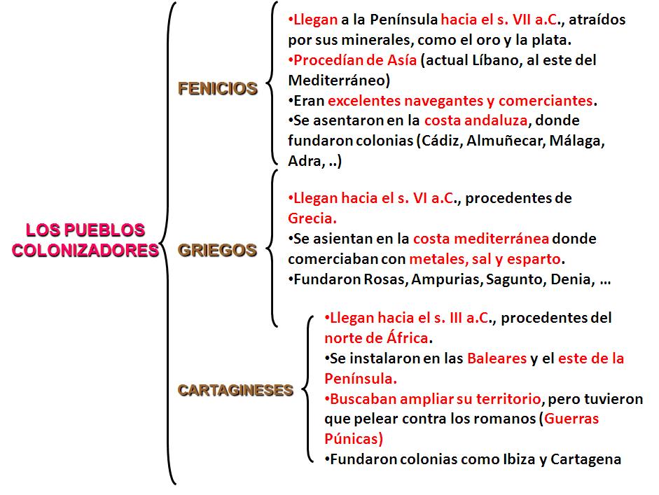 Los pueblos colonizadores reciben este nombre porque fundaron colonias en la Península. Fueron los fenicios, los griegos y los cartagineses.